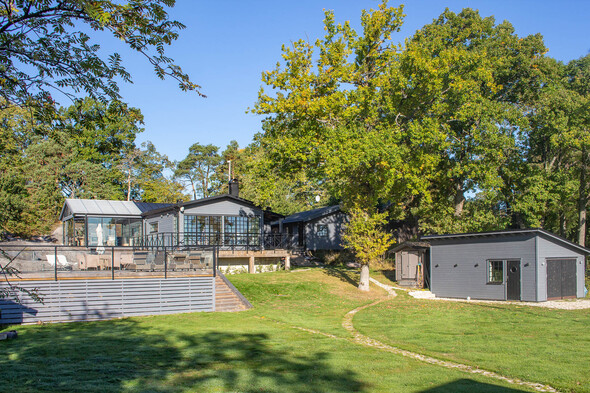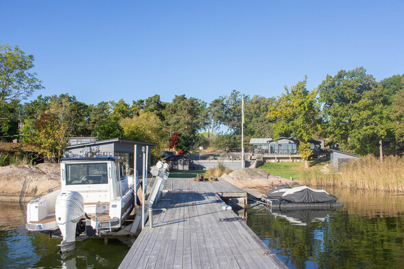 Ett sjöläge som erbjuder ett förstklassigt nyttjande året om på Saxarfjärdens finaste ö. Pool, stora terrasser, två gästhus, flera bodar och trädgårdsgarage. Klippor och rejäl brygganläggning med båtlyft. Modernt och stilfullt utbyggt senaste åren. Waxholmsbåt året om.